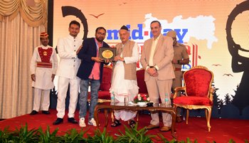 Director Dhiraj Kumar is honoured at the Mid-Day Maharashtra Gaurav Awards by the Governor...
